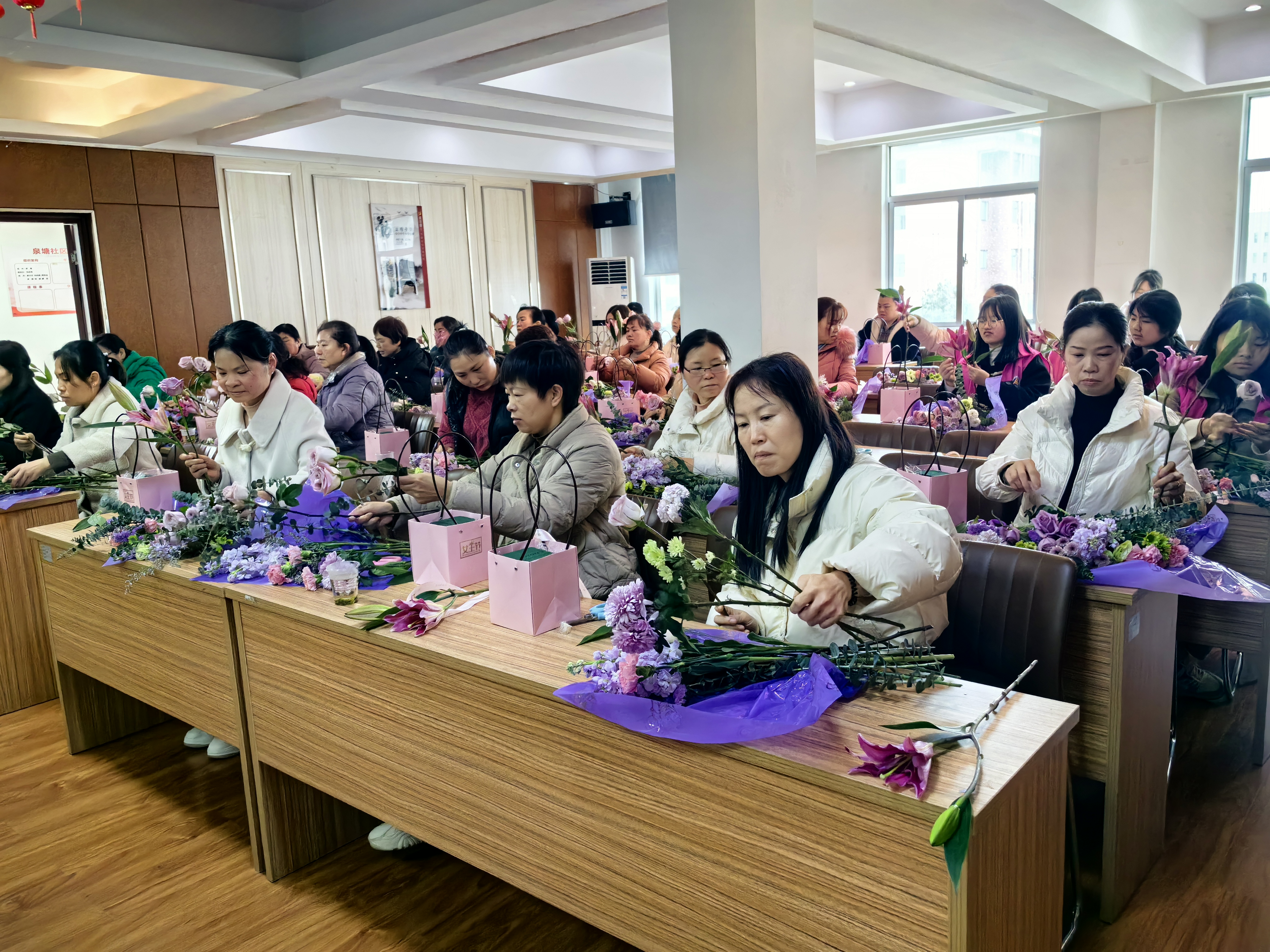 “指尖艺术”插花体验环节中,资深花艺师分享了插花艺术的历史、流派以及现代花艺的创新趋势,从花束挑选、搭配技巧以及养护方法等方面逐一进行耐心细致的讲解和说明。花艺师把美丽的花朵比作雷锋同志鲜红的生命,绚烂而惊艳,散发芳香,温暖世界。在花艺师的指导下,每位参与者都亲手制作了精致的插花作品。