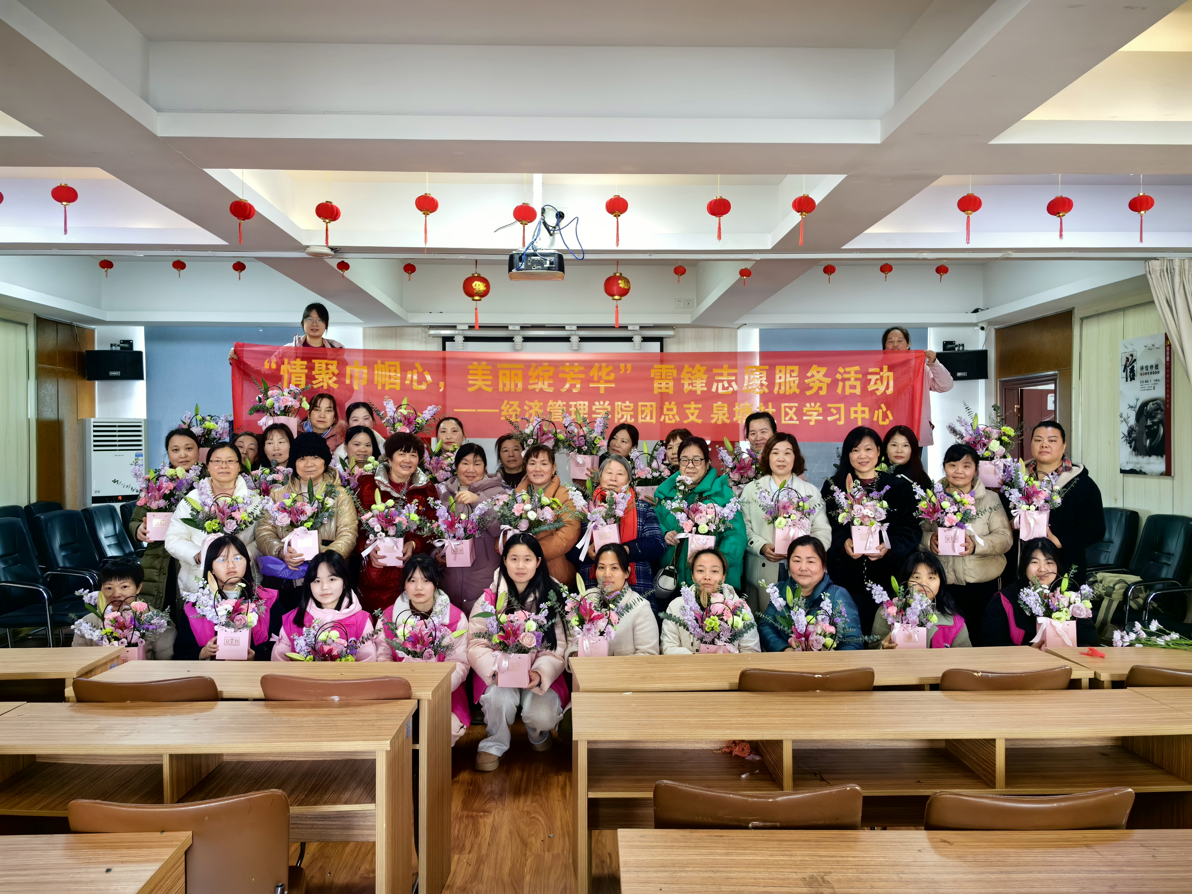 为传承雷锋精神,弘扬文明新风尚,传播社会正能量,迎接“三八”国际妇女节,3月7日上午,经济管理学院联合泉塘社区学习中心开展以“情聚巾帼心,美丽绽芳华”为主题的学雷锋志愿服务活动,共同缅怀时代楷模雷锋同志,传承清廉文化精神。