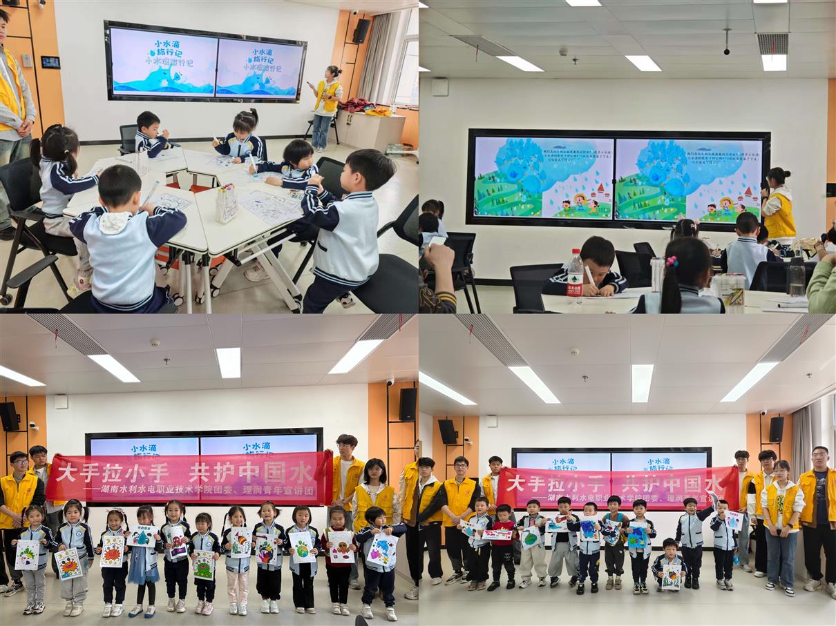 3月22日第33届“世界水日”当日,学校团委携手“红帆”水文化宣讲团、“理润青年”宣讲团,与湖南省水利厅幼儿园中二班联合举办“探秘水情馆·共筑节水梦”主题实践教育活动。50余名师生及家长走进校园,通过沉浸式研学、互动课堂、创意实践等环节,在寓教于乐中深化节水意识,传承护水责任。