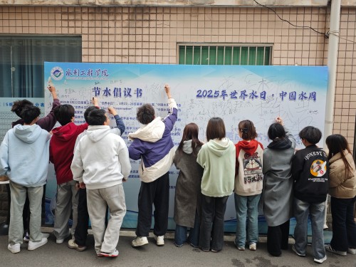 用宣传活动营造节水氛围。3月24日,水利工程学院大一各班利用晚自习时间召开“推动水利高质量发展,保障水安全”主题班会。各班学生代表结合专业特色,讲解我国水资源现状、冰川消融危机及水利科技前沿。活动中,同学们集体观看纪录片《冰川消融警示录》,片中触目惊心的冰川消融画面引发热烈讨论。2024级学生肖贝贝表示:“作为水利青年,我们既要为水安全献策,更要为子孙后代留住每一片冰川。”3月28日水利之光志愿服务队在“水利青年之家”一站式学生社区内开展了“节水倡议签名”活动。师生积极参与节水承诺签名打卡,印有节水倡议书的签名墙迅速被填满。参加活动学生表示:“作为新时代水利青年,我们应从生活的点滴做起,以实际行动支持节水工作,为保护地球水资源贡献力量。”
