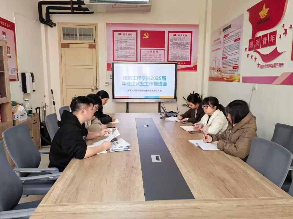 为全面落实学校就业工作部署,全力促进毕业生高质量充分就业,3月31日,建筑工程学院“向云端”辅导员名师工作室在三教402办公室召开2025届毕业生就业工作推进会议。学院党总支副书记以及毕业班辅导员参会,工作室负责人主持会议。