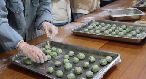 “清明时节雨纷纷,路上行人欲断魂”。活动伊始,指导老师从清明节的起源、习俗到青团的象征意义,从祭祖扫墓到青团制作,生动地讲解了清明节的文化意蕴。随着艾草的清香弥漫整个活动现场,活动现场的氛围也达到了高潮,校企双方精心准备了艾草粉、糯米粉、豆沙馅、咸蛋黄等众多食材,学生们则在指导老师的带领下,揉面、包馅、蒸制,亲身体验着青团制作的全过程,从生疏到熟练,从熟练到沉浸。