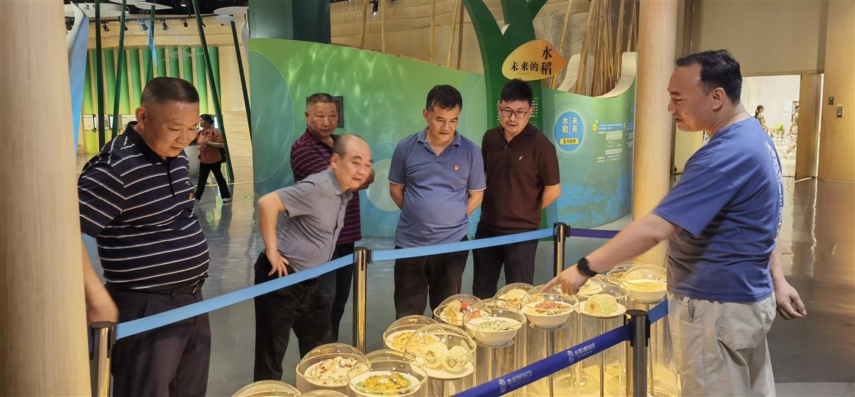 当日上午全体党员在一教116会议室开展集中学习后驱车前往湖南省农科院杂交水稻展览馆及隆平水稻博物馆开展沉浸式学习。在杂交水稻展览馆,党员们通过200余件珍贵实物展品,系统了解我国杂交水稻研发历程;在隆平水稻博物馆“稻米香万年”展厅,通过全息影像技术重现袁隆平院士田间科研场景。