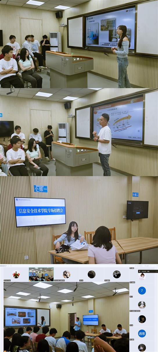 5月27日,信息安全技术学院创新采用“线上 线下”双线模式举办2025届毕业生专场招聘会,吸引东莞达瑞电子股份有限公司、深圳长城开发科技股份有限公司、领益智造科技有限公司三家企业进校宣讲。40余名在校毕业生线下参与,100余名学生通过云端直播同步观看,线上线下共投递简历80余份,现场初步达成就业意向十余人,为毕业生搭建了就业平台。