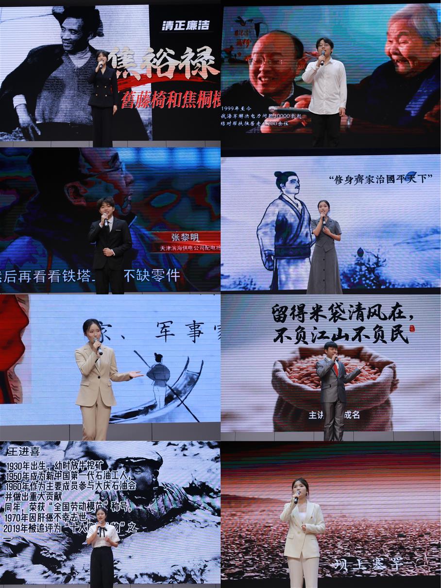 在第一篇章“青史廉光”中,龙睿佳以《丹心照雪千钧诺,铁骨擎天两袖清》为题带我们走进明代名臣于谦“粉骨碎身浑不怕,要留清白在人间”的浩然正气;陈芊伊以《穿越五百年的清廉之光》为题与现场师生一起遇见“英雄血泪总斑斑,敢批逆鳞甘罢官”的海瑞;成名以《留得米袋清风在,不负江山不负民》为题带我们相逢“天下第一廉吏”于成龙。在第二篇章“时代锋范”中,黄琳围绕《以廉洁为魂,以铁人为镜》歌颂着石油铁人王进喜的精神丰碑,肖惠在《青松不落尘:在塞罕坝的年轮里读懂廉洁精神》的讲述中带我们领略王尚海“不绿塞罕死不休”的铮铮誓言,戴伊倩则围绕《旧藤椅和焦桐树》让全场师生感动于人民公仆焦裕禄用生命镌刻廉洁。在第三篇章“青春传承”里,学院学子结合电力专业发出自己的廉洁之声,谢埃夫以《钱海军:照亮万家的灯火》为题照见“用23年点亮5000余户家庭”的钱海军,谢晨晰围绕《以廉为光,点亮生命底色》讲述着张黎明“用35年巡线8万公里”的故事。