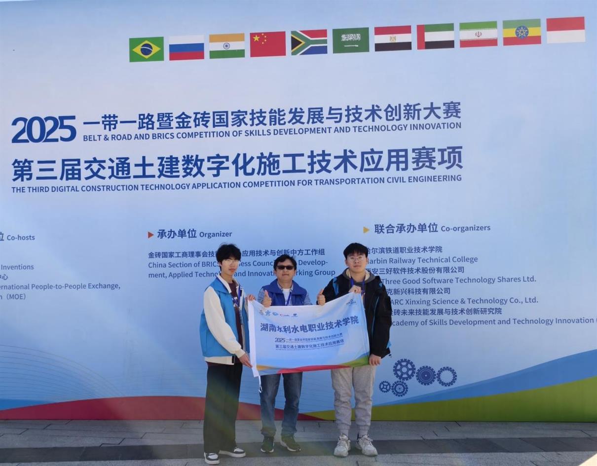 近日,2025一带一路暨金砖国家技能发展与技术创新大赛第三届交通土建数字化施工技术应用赛项决赛圆满闭幕,我校参赛团队凭借扎实的专业能力与出色的技术应用水平,一路过关斩将,最终斩获高职组交通土建赛道二等奖,为学校在国际技能赛事领域再添亮眼成果!