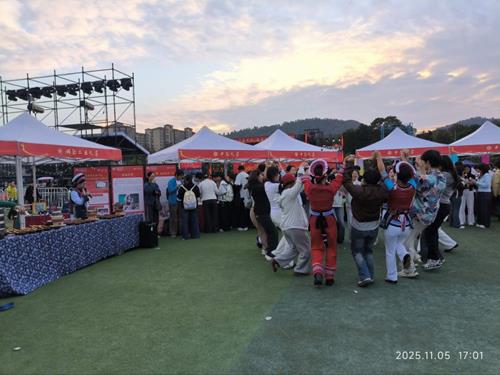 当日15时起,师生们首先投入现场展示体验活动。19所高校的24个展位按“56”字样排布,中南大学、湖南大学等高校通过“静态展陈+动态演绎+交流互动”模式,全方位呈现铸牢中华民族共同体意识相关工作成果。18时30分,文艺展演准时拉开帷幕。14个节目分“锦绣山河・美美与共”“石榴花开・团结礼赞”“同心向党・万疆同辉”三个篇章依次上演,中南大学《九州同》的悠扬民乐、湖南工业大学《籽籽同心》的动人歌舞、湘潭大学《何以中国,同心筑梦》的深情朗诵,以丰富形式展现各民族文化交融的生动图景,让师生们沉浸式感受多元文化魅力。