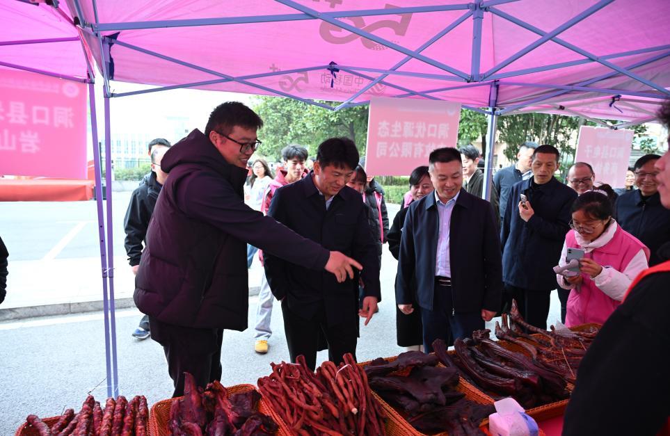 “真没想到我的腊肉在学校里这么受欢迎!”12月2日上午,“洞口县农产品直营店”揭牌仪式暨“洞乡源味”展销会在学校成功举办,洞口县委常委、组织部部长唐建新,学校党委书记常世名等校地双方领导、洞口县企业和学校师生代表齐聚一堂,共同见证这一深化合作、助力乡村振兴的生动实践。