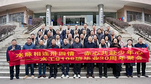 三十春秋喜相逢,欢声笑语满堂融。1月2日,学校校园内暖意融融,水工9108班的校友们跨越山海,重返菁菁校园,共赴毕业三十周年聚会。上午,校友们在当年班主任丁灿辉、王国宝老师的带领下,兴致勃勃地参观了校史馆和水情馆,回顾母校发展历程,亲身感受其办学规模的壮大、教学科研的丰硕成果以及在水利行业形成的独特文化传承,久别重逢的喜悦在心中激荡。