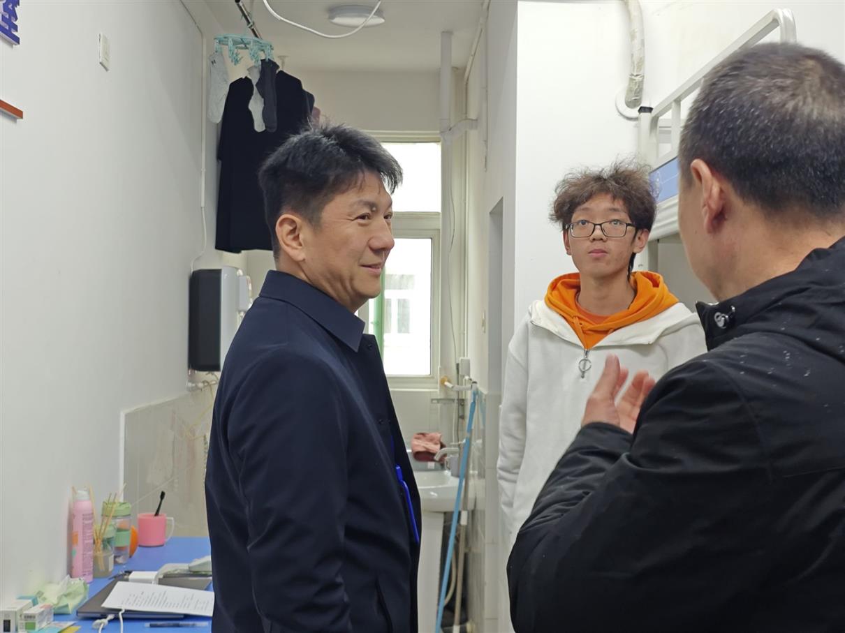 检查期间,各组深入校园一线,直奔重点、直击要害,细致排查各类安全风险,现场办公解决实际问题。常世名带队重点检查校门区域与学生宿舍,在门卫处,详细询问安防设施运行情况,查阅人员及车辆进出登记记录,强调校门作为校园安全第一道防线,必须万无一失;在学生宿舍,严格核查用电安全、消防通道畅通情况及物品堆放合理性,常世名书记与在寝同学亲切交流,询问学习生活状况,提醒大家维护整洁安全的宿舍环境,杜绝吸烟等危险行为,坚守消防安全责任。