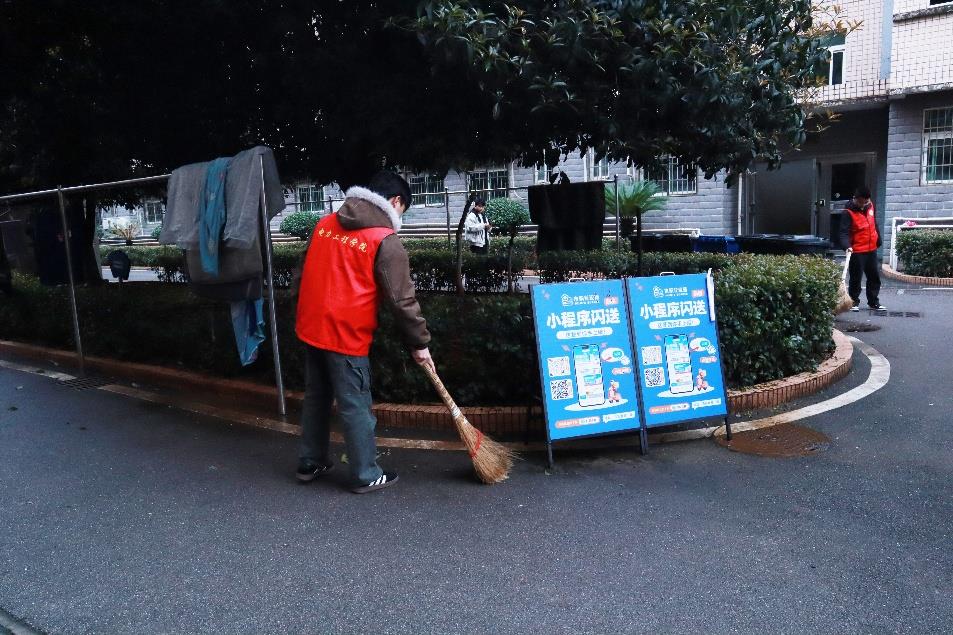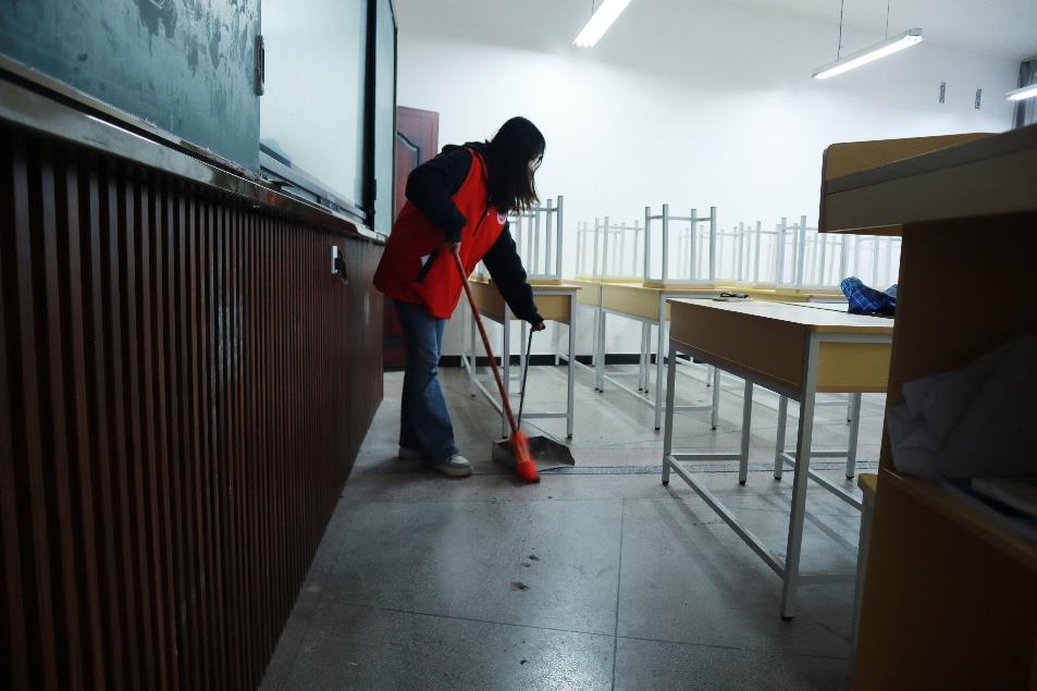 活动过程中,志愿服务队成员按照预先划定的区域,分组对教学楼与男生宿舍公共区域进行了全面细致的清扫。大家手持扫帚、抹布等工具,擦拭讲台与公共设施、认真清理路面落叶。同学们分工协作,干劲十足,不放过任何一个细节。在劳动间隙,同学们还相互交流环保心得,分享参与校园建设的感悟,在挥洒汗水中增进了情谊,也让“校园是我家,洁净靠大家”的理念更加深入人心。