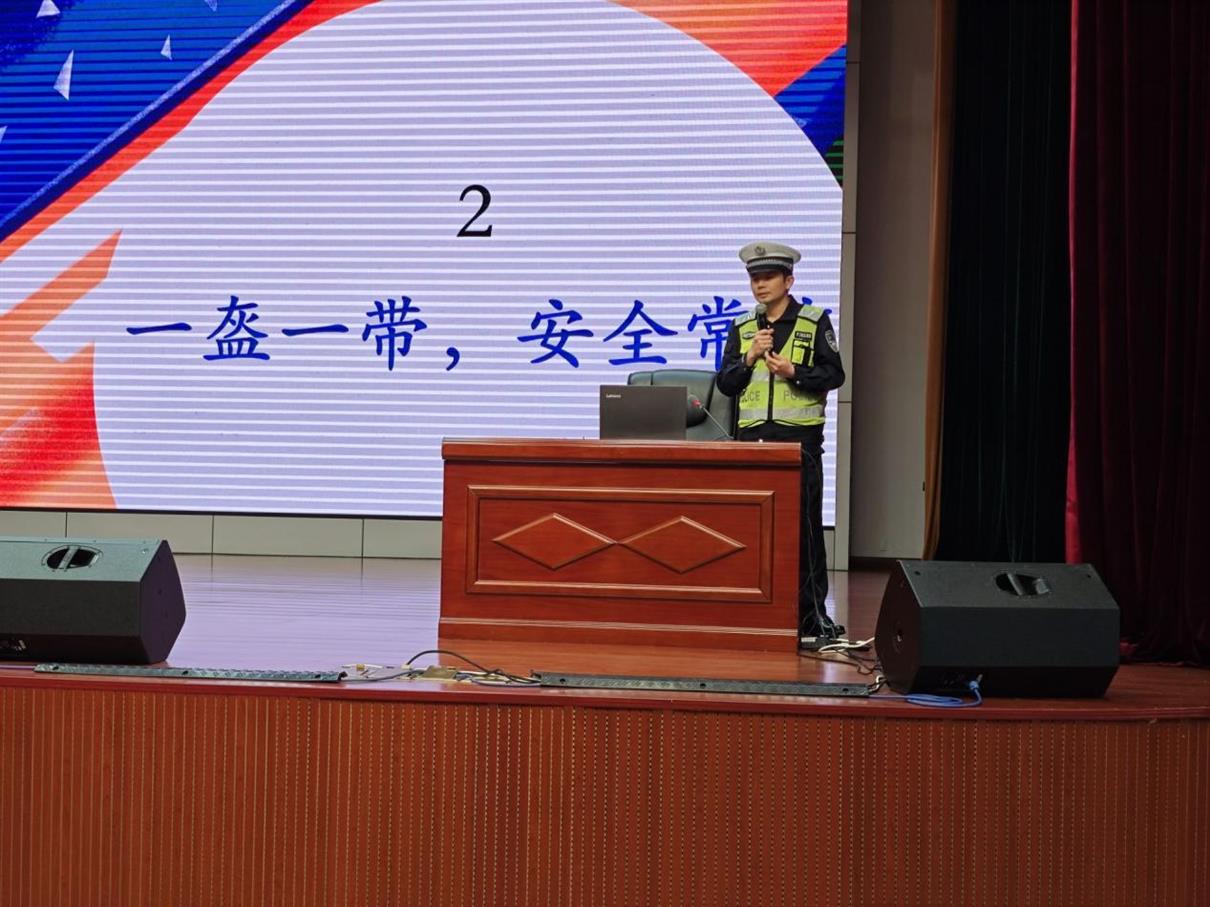 学校邀请长沙县交警大队彭广警官开展交通安全教育。彭广警官结合校园周边典型交通事故案例与现场监控视频,重点讲解“一盔一带”安全守护行动要求,警示电动车骑行不戴头盔、横穿马路、违规载人等交通陋习的严重危害,引导师生自觉遵守交通法规、养成文明出行习惯,守护自身与他人生命安全。